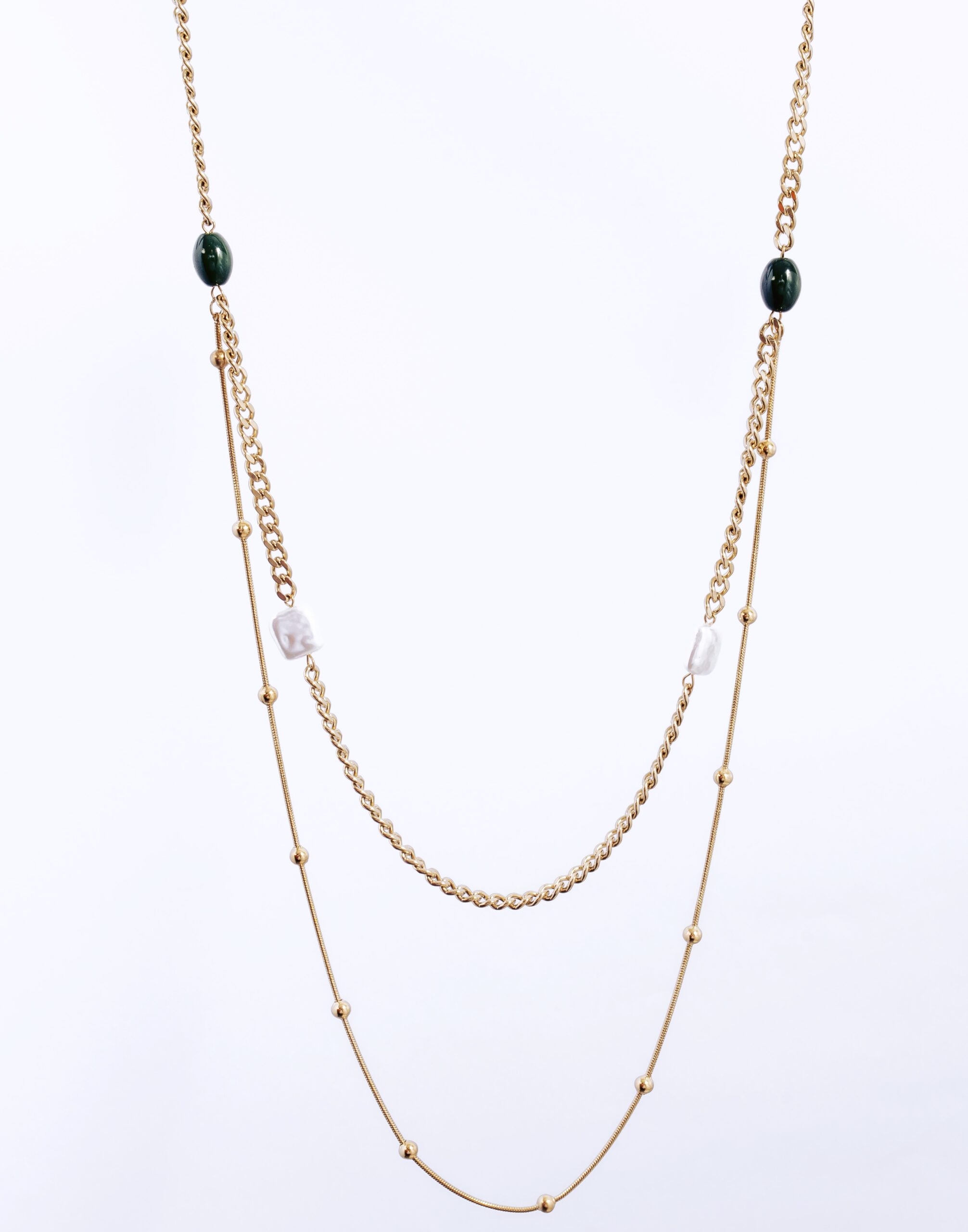 Marbles long double chain gold plated
