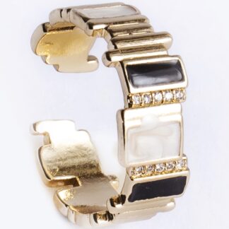 Black white square marble Gold plated ring