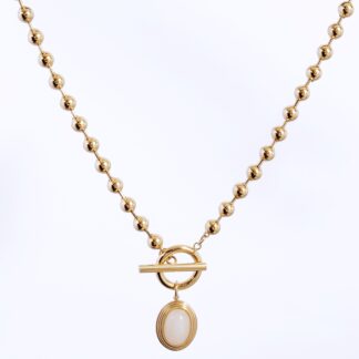 White Oval Marble gold plated Necklace