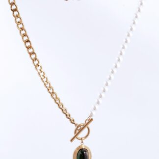White pearls with cartier chain 316L plated