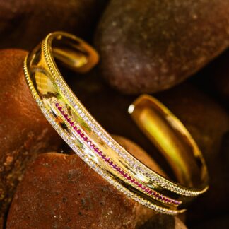 Gold Bangle with colored line Crystals